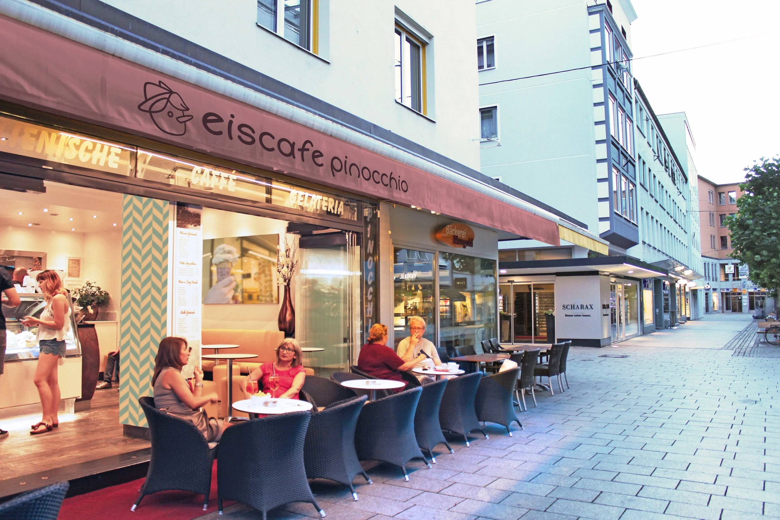 Eiscafé Pinocchio is an Italian, family run gelato shop in Bregenz, Austria. The café serves house made gelato, Italian coffee, and select cocktails. Located in the heart of Bregenz’ pedestrian zone, it is a popular spot for locals and tourists alike.